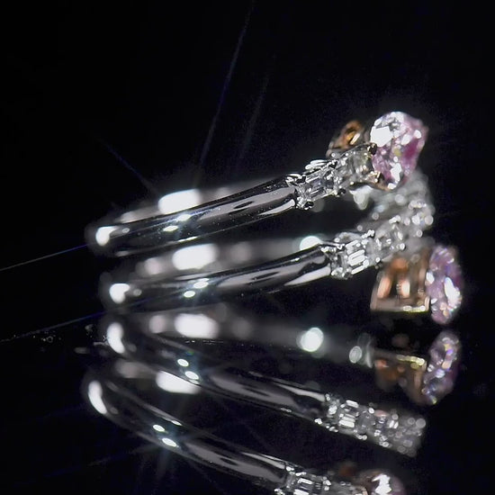 18K White & Rose Gold Statement Ring With 0.90 TCW Pink Pear Shape Natural Diamond, GIA Certified
