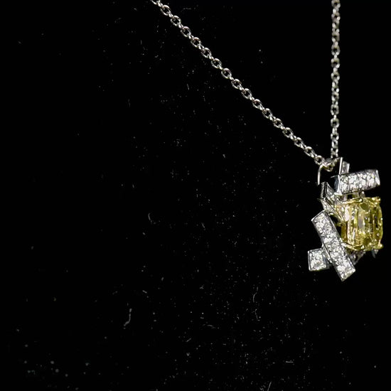 18K White & Yellow Gold Statement Necklace With 3.00 TCW Yellow Cushion Shape Natural Diamond, GIA Certified