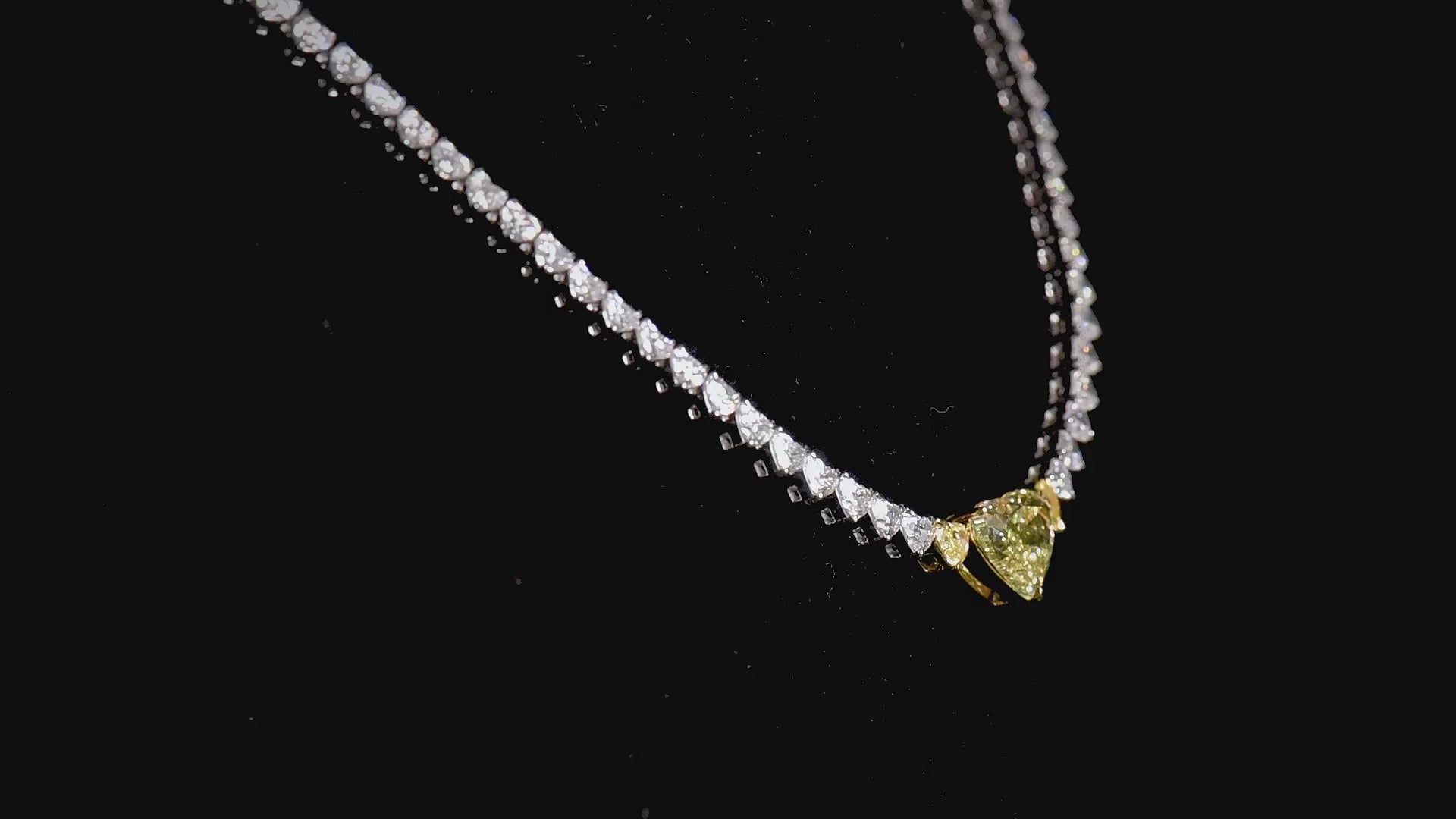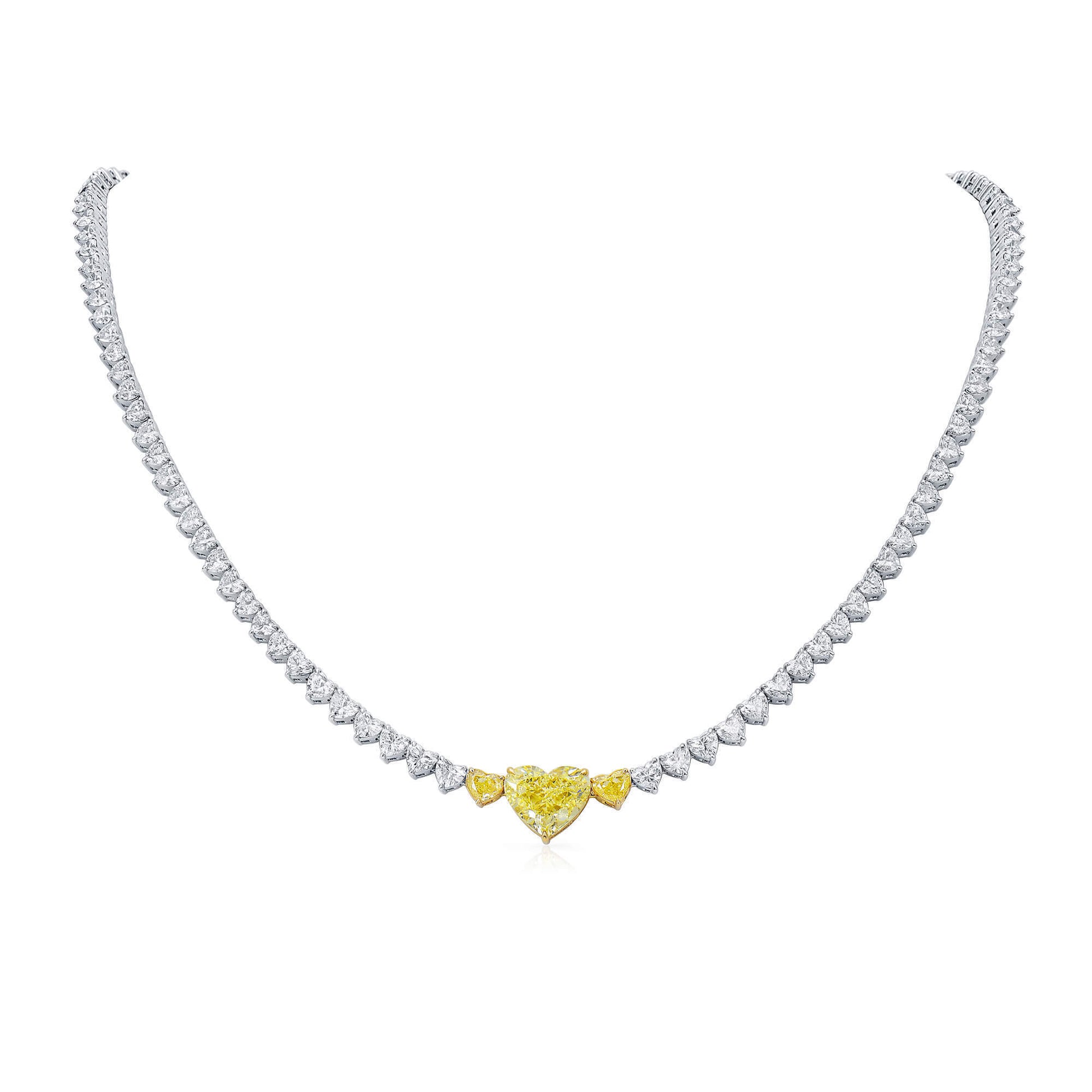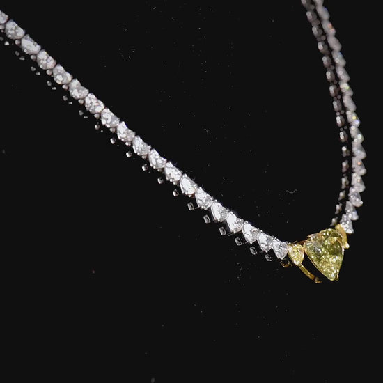 18K White & Yellow Gold Statement Necklace With 3.82 TCW Yellow Heart Shape Natural Diamond, GIA Certified