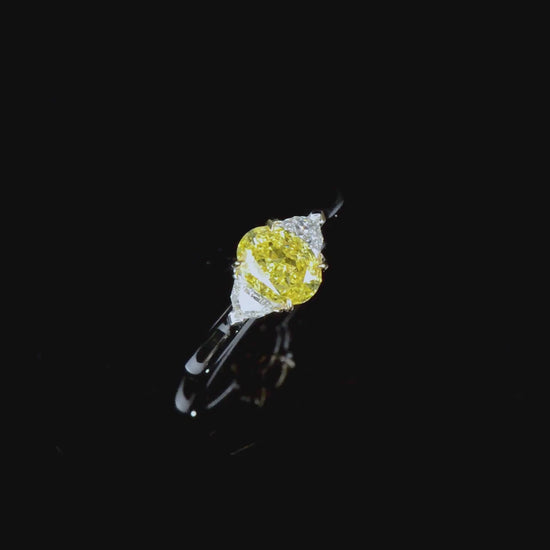 18K White & Yellow Gold Statement Ring With 1.27 TCW Yellow Oval Shape Natural Diamond, GIA Certified