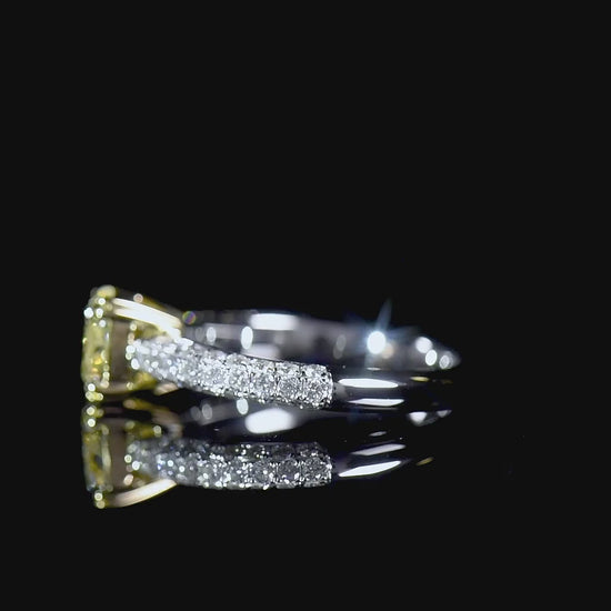 18K White & Yellow Gold Statement Ring With 1.52 TCW Yellow Cushion Shape Natural Diamond, GIA Certified