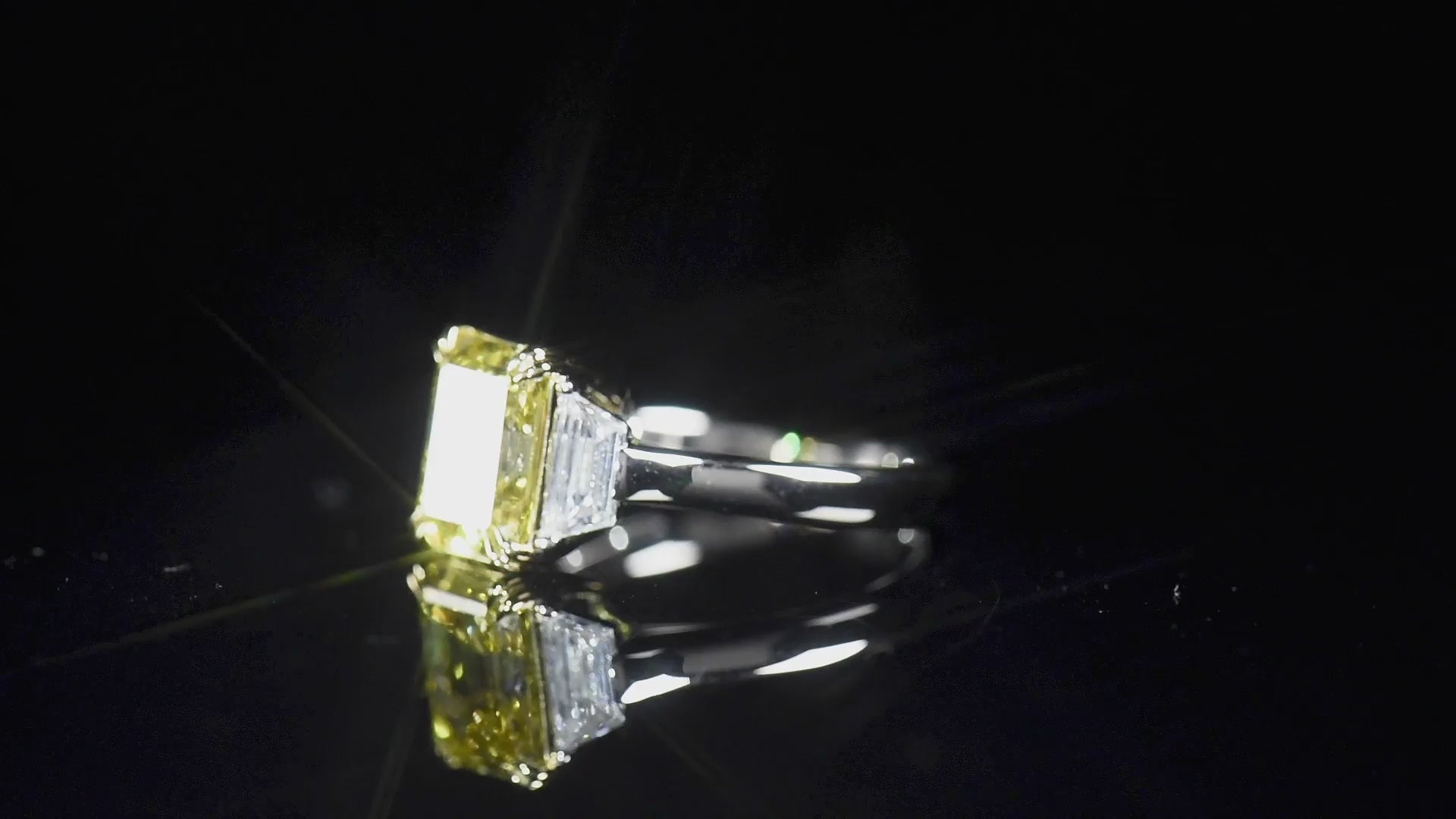 18K White & Yellow Gold Statement Ring With 3.08 TCW Yellow Radiant Shape Natural Diamond, GIA Certified