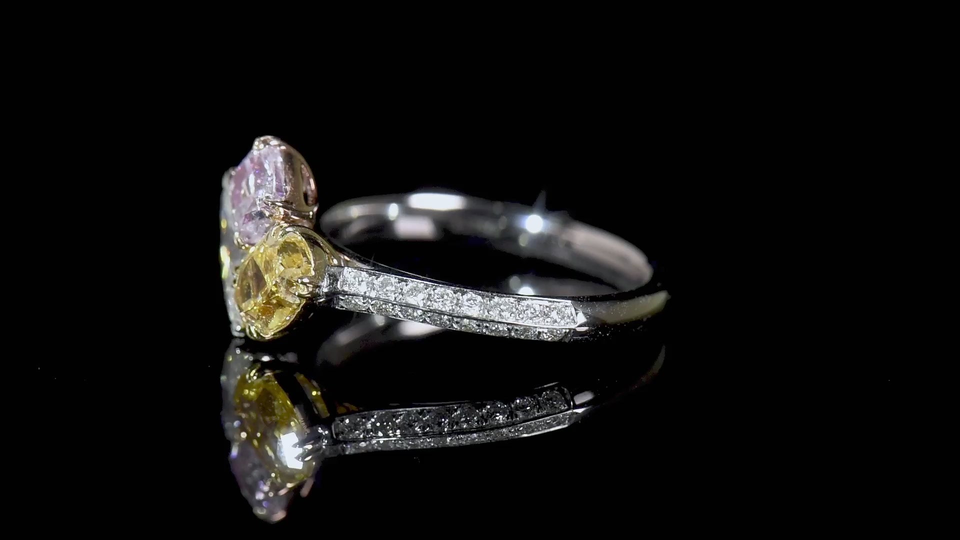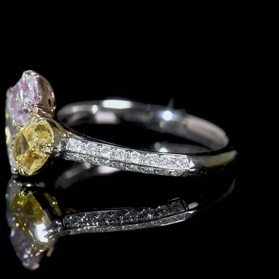 18K White Yellow & Rose Gold Statement Ring With 1.74 TCW Pink Mix Shape Natural Diamond, GIA Certified