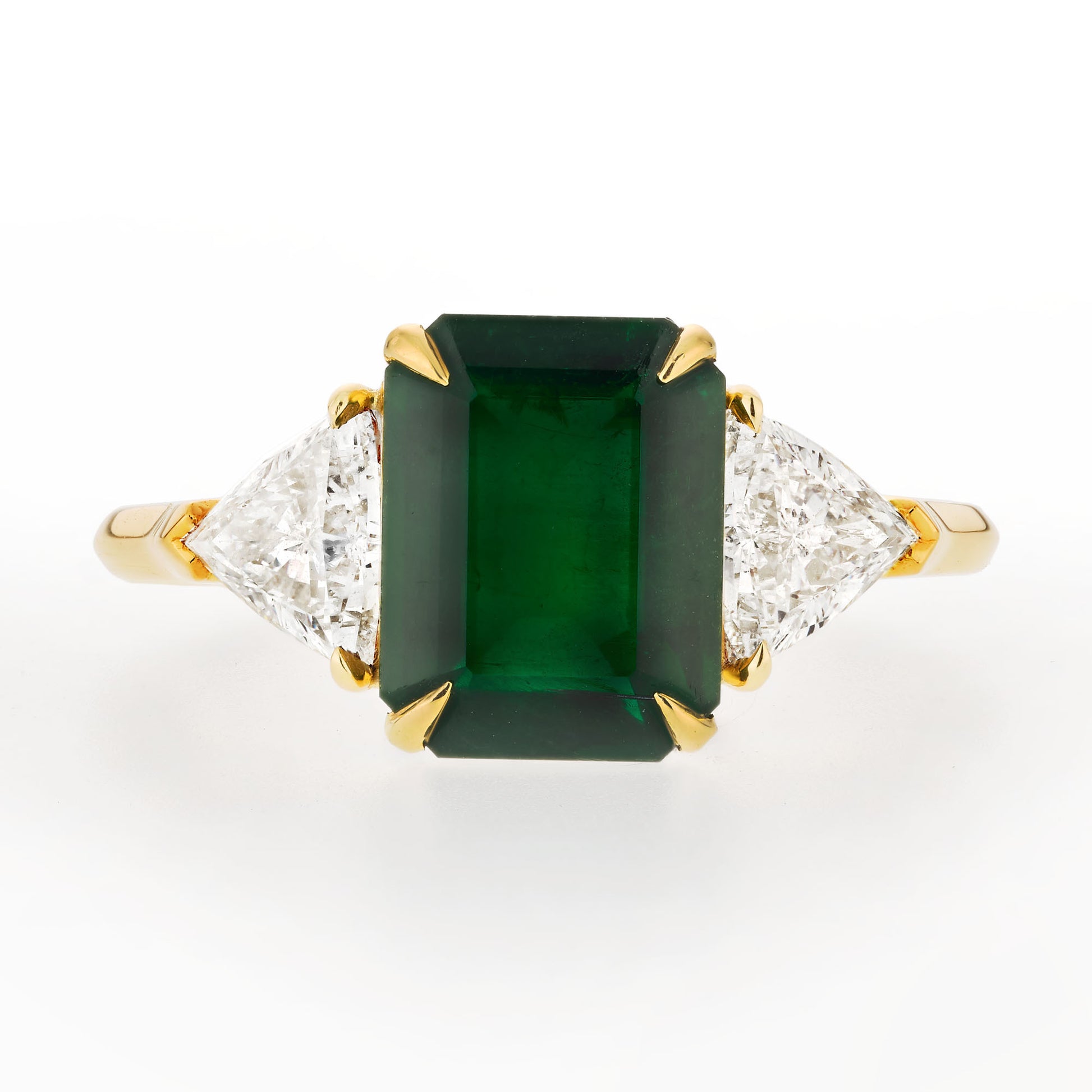 18K Yellow Gold Statement Ring With 2.31 TCW Emerald Shape Natural Emerald, GRS Certified
