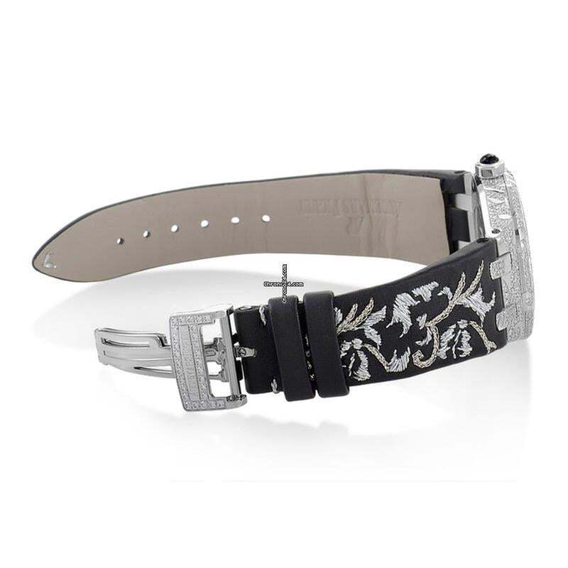 Audemars Piguet Royal Oak Lady Quartz Women's Watch White Gold Case With Satin Strap Authentic Luxury Timepiece