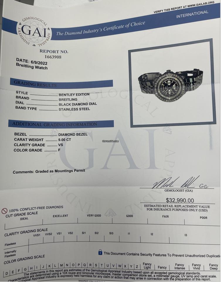 Breitling Bentley 6.75 Automatic Men's Watch With Steel Case and Strap Authentic Luxury Timepiece