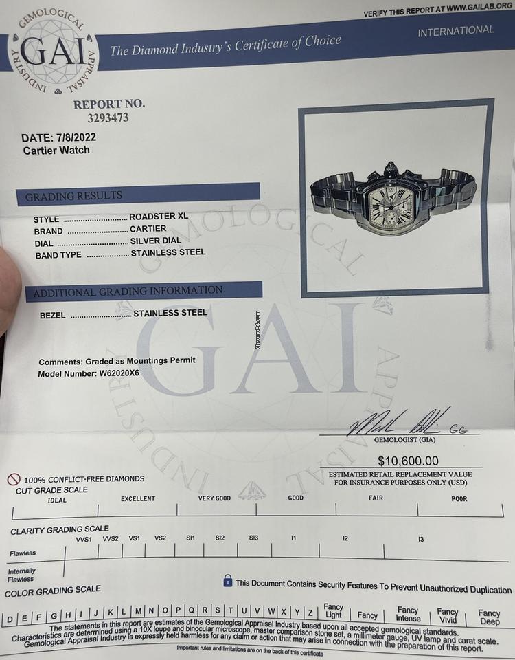 Cartier Roadster Automatic Men's Watch With Steel Case and Strap Authentic Luxury Timepiece