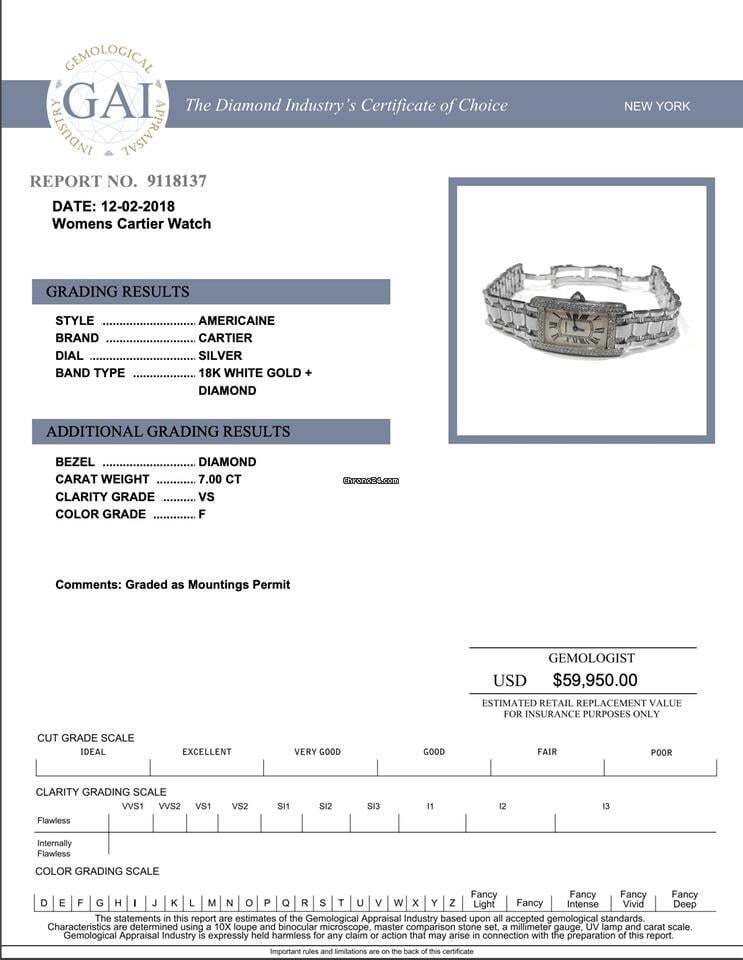 Cartier Tank Américaine Quartz Women's Watch With White Gold Case and Strap Authentic Luxury Timepiece