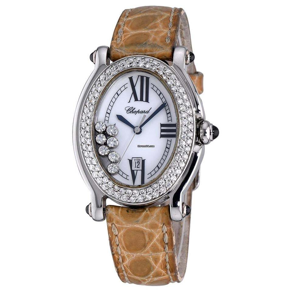 Chopard Happy Sport Quartz Women's Watch Steel Case With Leather Strap Authentic Luxury Timepiece