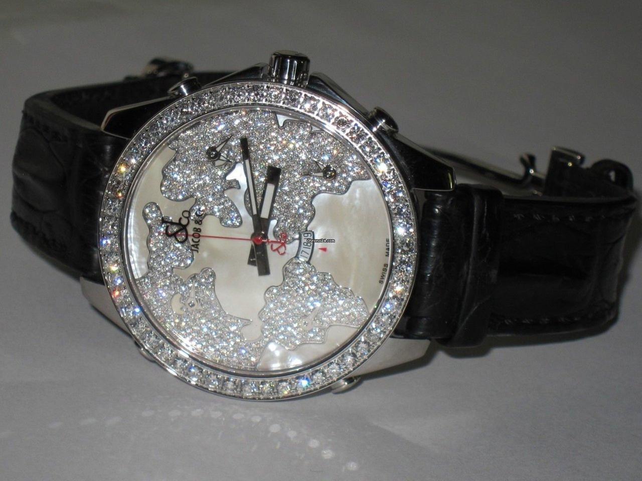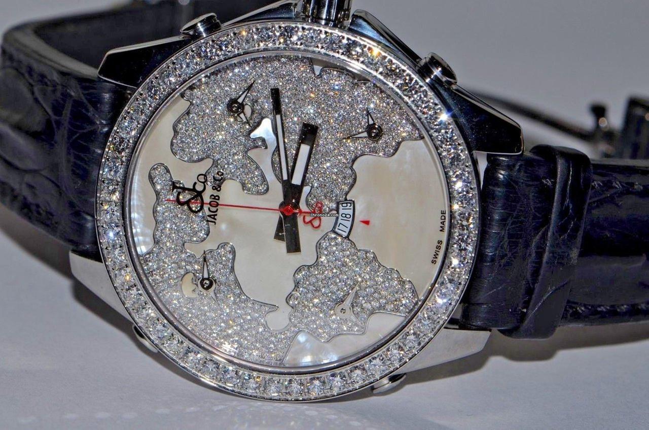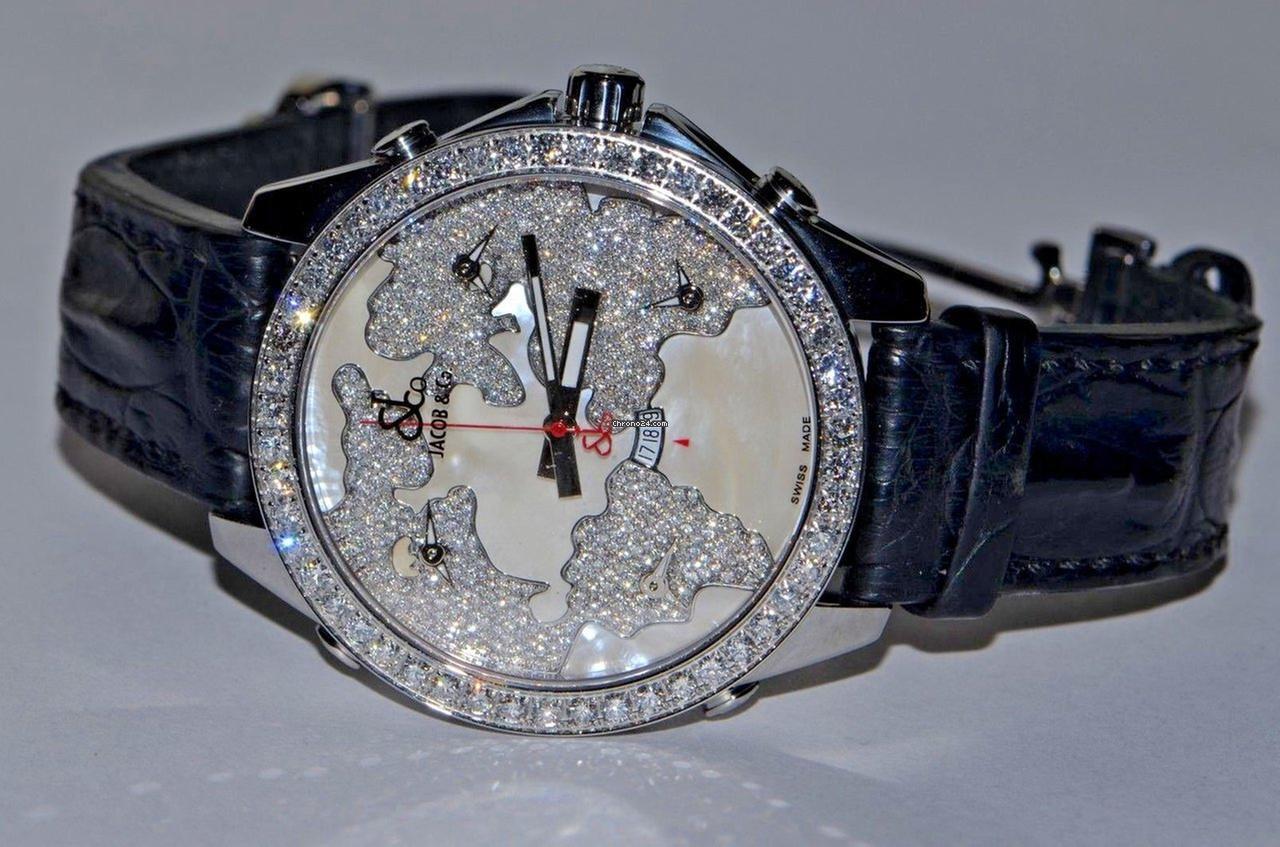 Jacob & Co. Five Time Zone Quartz Men's Watch Steel Case With Leather Strap Authentic Luxury Timepiece