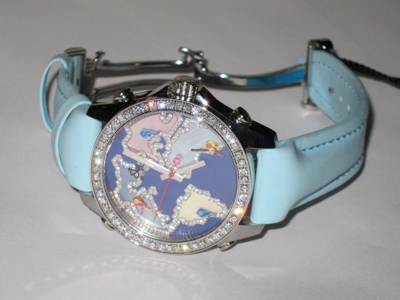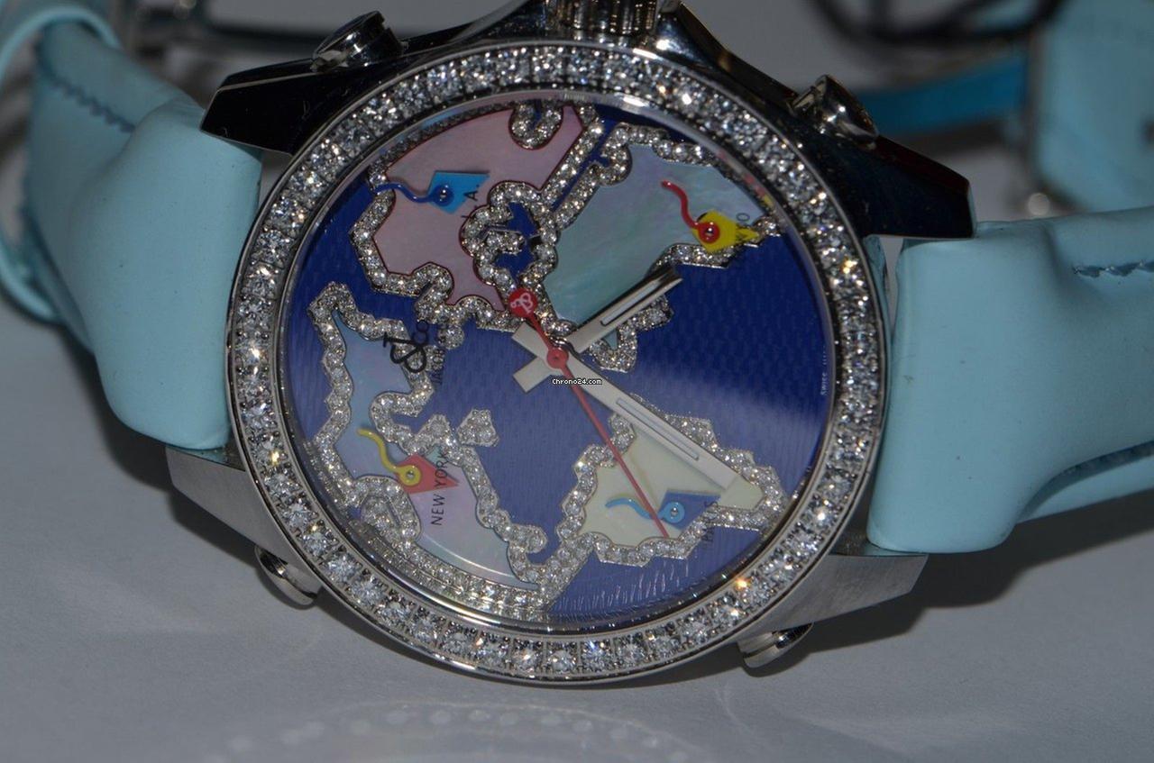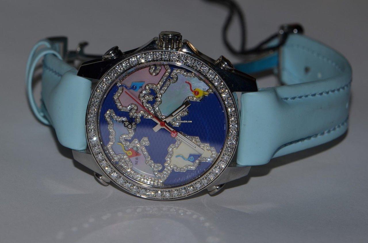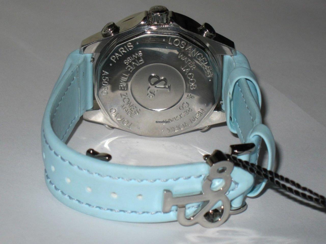 Jacob & Co. Five Time Zone Quartz Men's Watch Steel Case With Leather Strap Authentic Luxury Timepiece