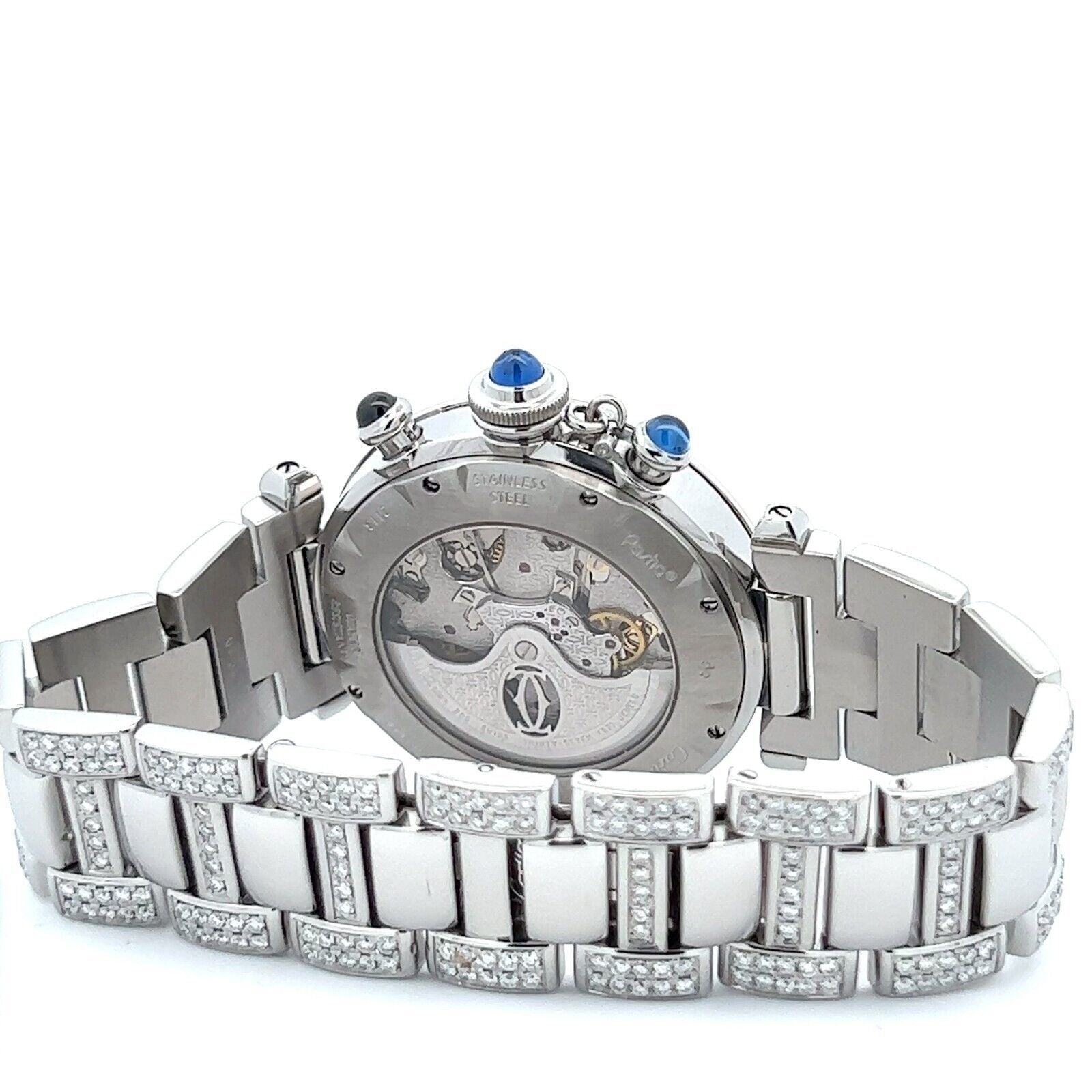 Mens Cartier Pasha Steel Chrono Chronograph Automatic Diamonds