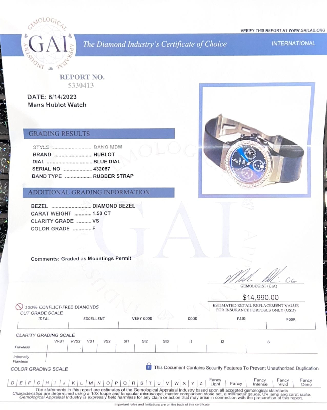 Mens Hublot Bang MDM Stainless Steel Chronograph Diamonds