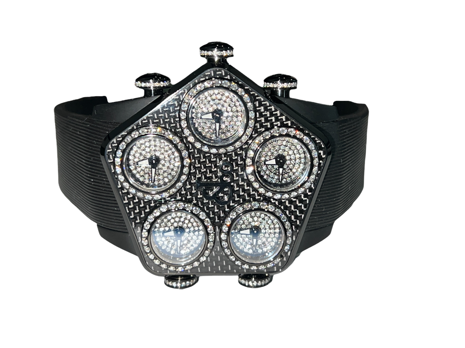 New Mens Jacob & Co. Grand Five 5 Time Zone Carbon Fiber Diamonds