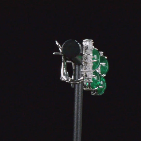 No Metal Statement Earrings With 4.20 TCW Round Shape Natural Emerald, GRS Certified