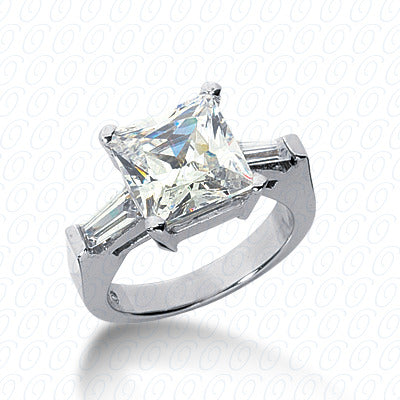 Princess Center Set Diamond with Bar Set Baguette Diamonds Engagement Ring - ENR2958