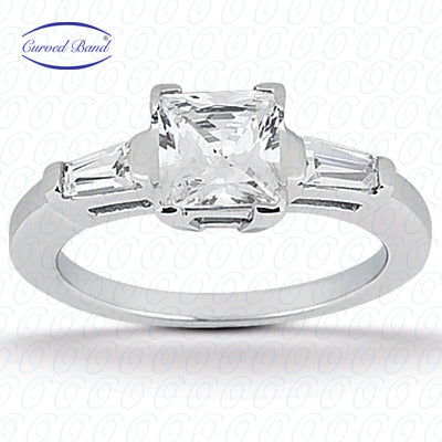 Princess Diamond Semi Mount With Trapezoid Baguette Diamond Engagement Ring - ENS1337-A