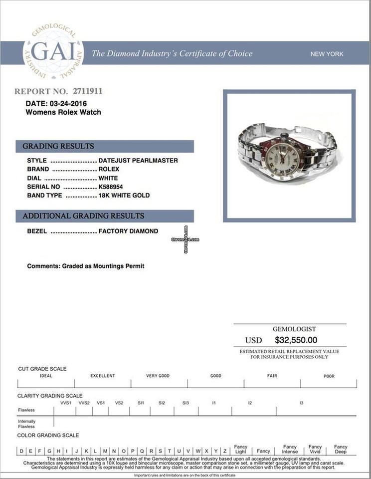 Rolex Lady-Datejust Pearlmaster Automatic Women's Watch With White Gold Case and Strap Authentic Luxury Timepiece