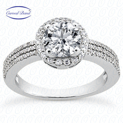 Round Center Three Row Semi Mount Diamond Engagement Ring - ENS3188-A
