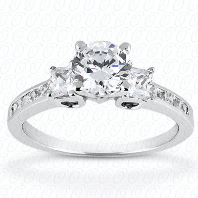 Women's 14K Round Semi Mount Ring Princess Side Stones