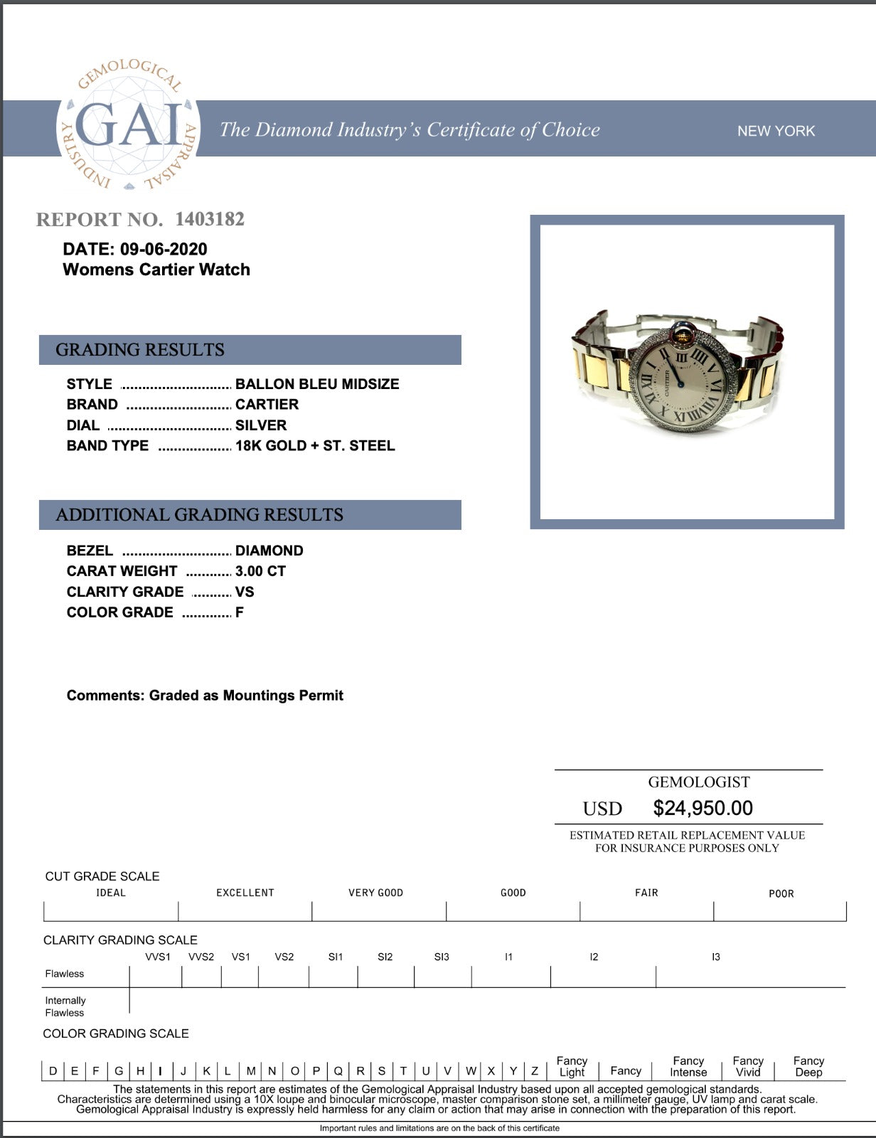 Womens Cartier Ballon Bleu 18K Gold Diamond Watch