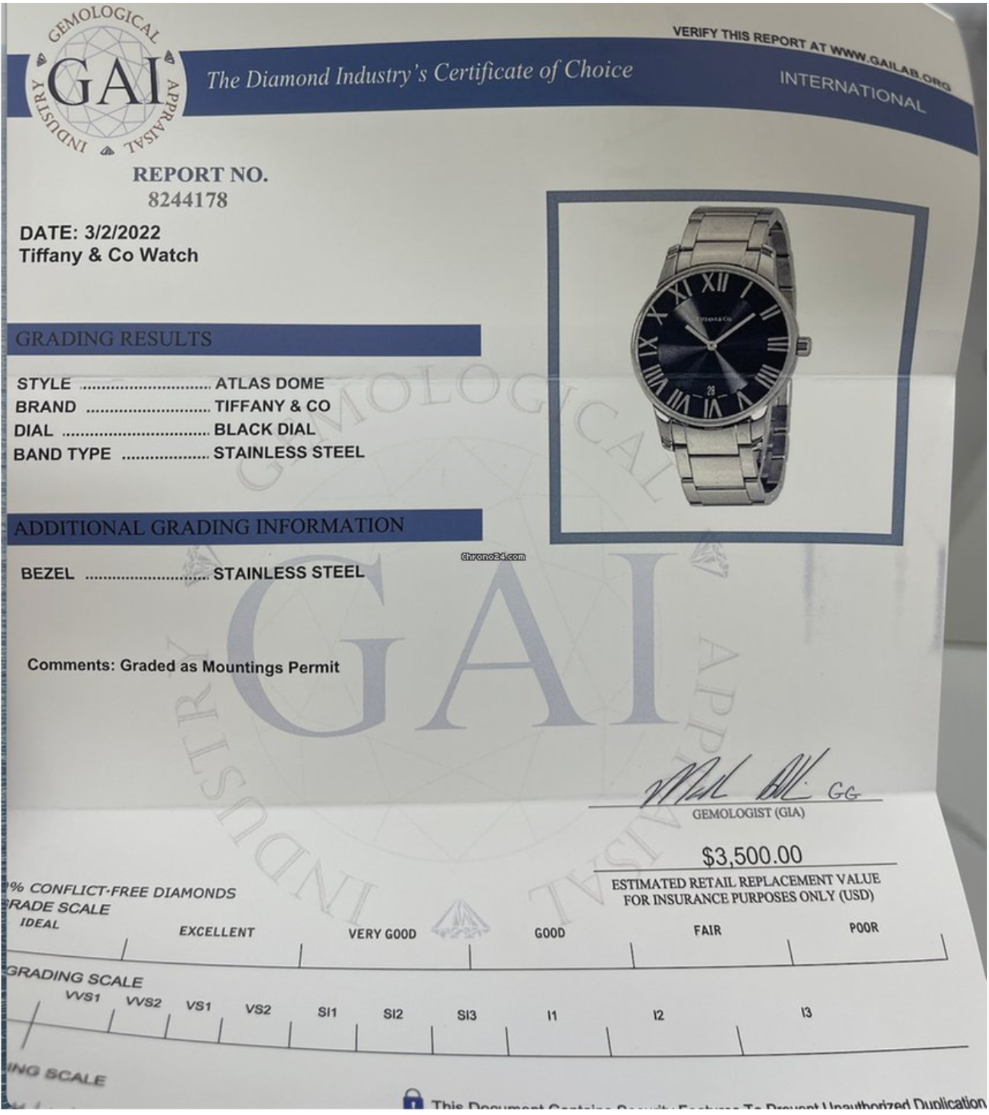 Womens Tiffany & Co Atlas Dome Steel 37mm